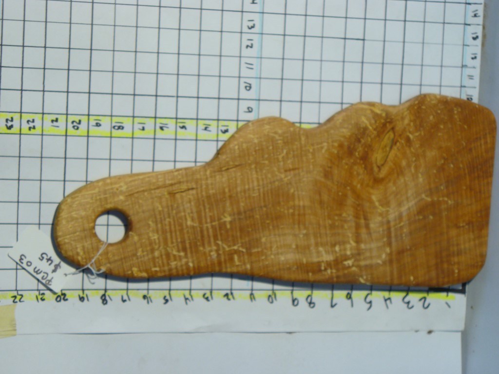The attached tag in the picture identifies the type of wood and price;