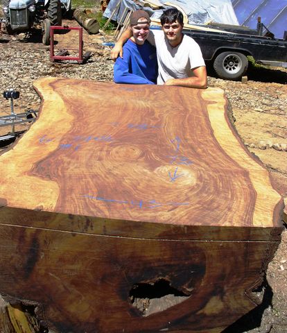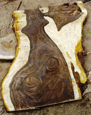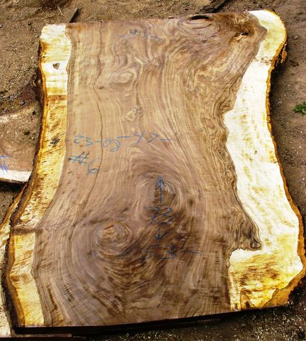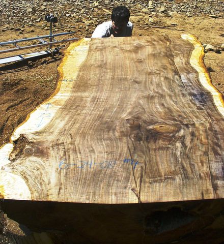 SOLD 62308-6 is a 6 foot long x 47-57" wide slab 3 1/2 inches thick. Wide natural edge tapers. Semi circular tight crack on one side. Widths 37,44,36,39,43,49,51 $1500 - Now $1,000 |