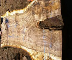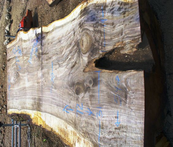 For most slabs the top side of the slab is shown and the next slab in the sequence is the bottom side of the same slab. Slab numbers correspond to cut dates. Slabs are stacked, stickered and air drying. Click pictures for larger image.